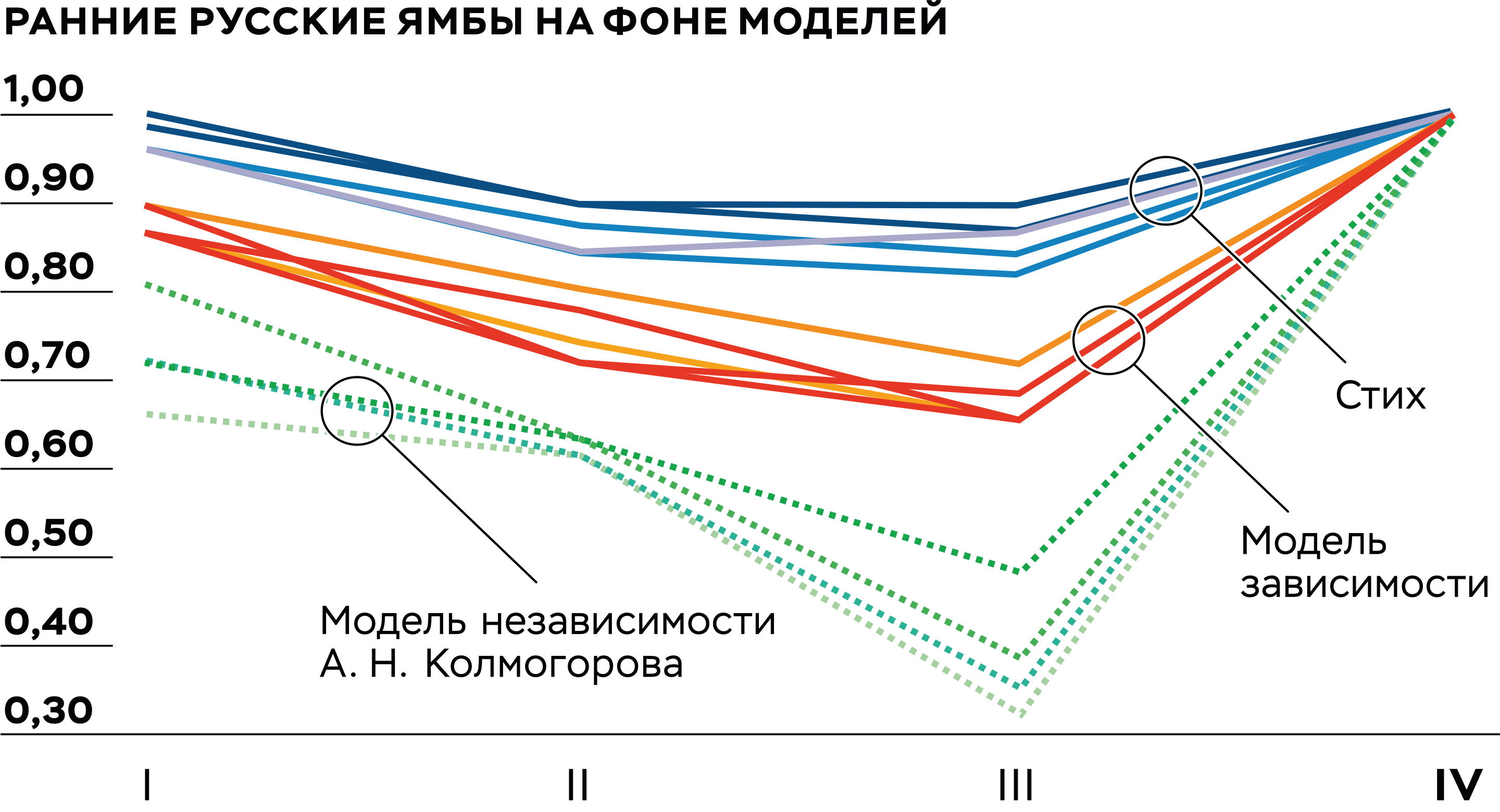 Колмогоров фактически заложил основы математического стиховедения как полноценной научной дисциплины: разработал четкие определения метра и ритма, показал, как строить вероятностную модель ямба, как статистически изучать ритмику стиха и прозы. Его ученица Марина Красноперова продолжила работу — создала систему вероятностных моделей стиха, первой стала применять компьютерное моделирование для стихотворной речи. Уже в 1970-е годы она начала опыты обработки стихотворных текстов на ЭВМ.