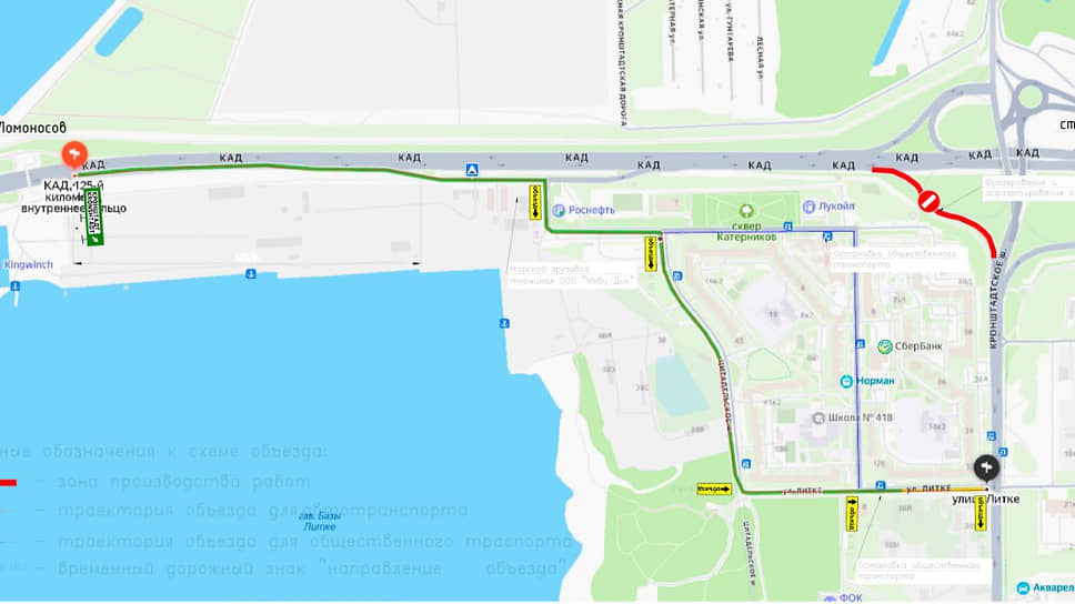 Движение в объезд участка проведения работ будет осуществляться через съезд к портовому комплексу «Моби Дик» и далее по улице Гидростроителей, Цитадельскому шоссе и улице Литке. Все остальные съезды транспортной развязки будут функционировать в прежнем режиме, уточнили в дирекции КЗС.