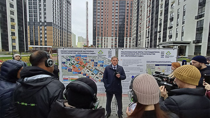 В ЖК «Яблоневые сады» гостей встретил генеральный директор ДСК Андрей Соболев, который рассказал о масштабах и особенностях проекта.