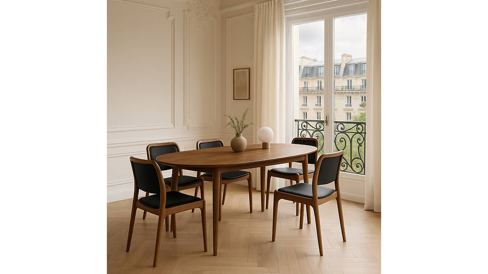 Наталия Казанская рассказывает, что перед проектированием изучала архивные работы в стиле ар-нуво, а также интерьеры и дизайн периода mid-century. Среди ее любимых архитекторов — бразилец Оскар Нимейер и финн Алвар Аалто. Это приверженцы органической архитектуры, чьи постройки не противопоставлялись природе, а становились ее логичным продолжением. Мебель из коллекции Linea лаконична и удачно дополнит любой интерьер. Древесина ореха выбрана неслучайно — у нее глубокая и теплая цветовая палитра, красивый рисунок и сложная текстура. Матовая поверхность достигается обработкой натуральными маслами. К такой мебели приятно прикасаться.