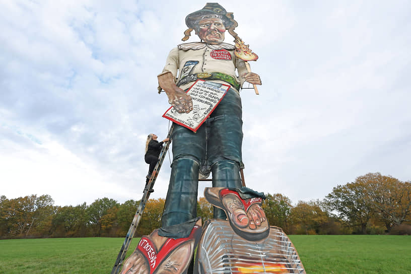 В городе Иденбридж, графство Кент, во время празднования Ночи Гая Фокса 8 ноября сожгут 11-метровую фигуру, изображающую премьер-министра Великобритании Кира Стармера. Как сообщает The Independent, местные умельцы изобразили господина Стармера с факелом в руках, в старинной шляпе и шлепанцах. В руках у премьер-министра планшет со списком дел, в числе которых «не повышать налоги», «построить 15 млн домов», «поддерживать малый бизнес», и все эти дела вычеркнуты, как будто выполненные. Не зачеркнуто только «выслужиться перед Трампом».
