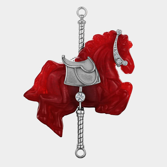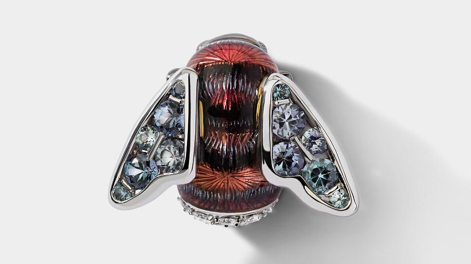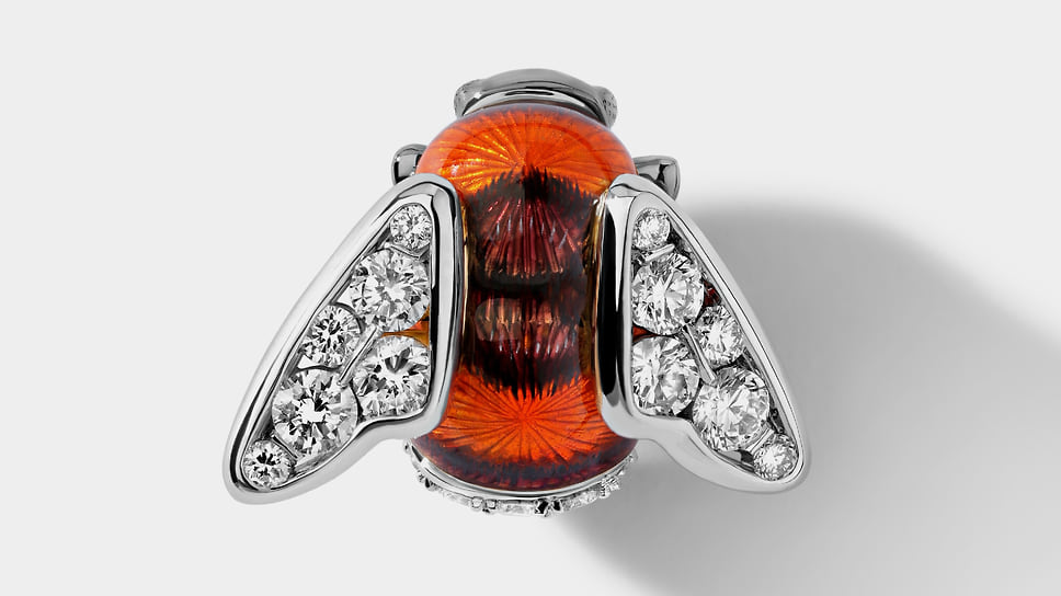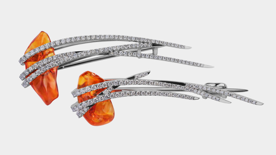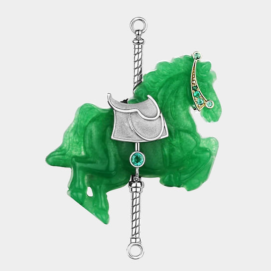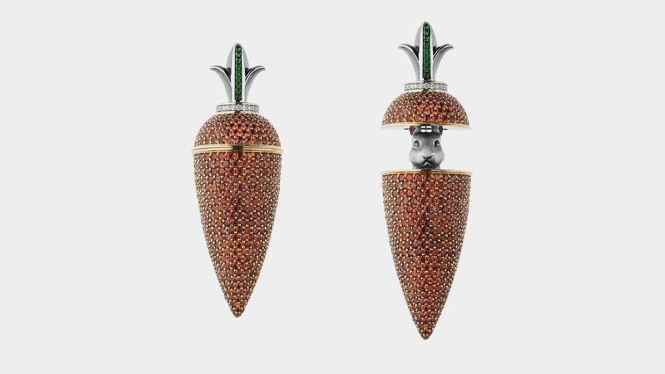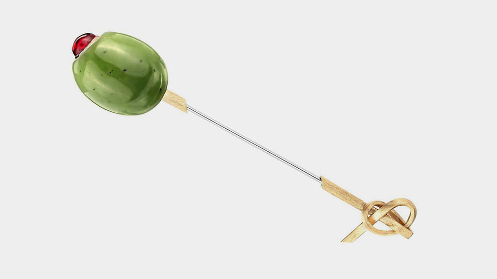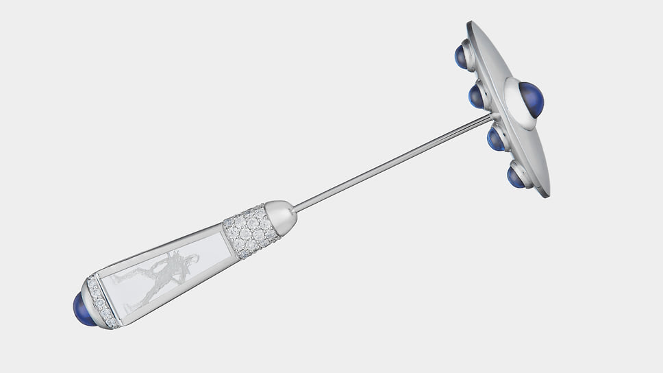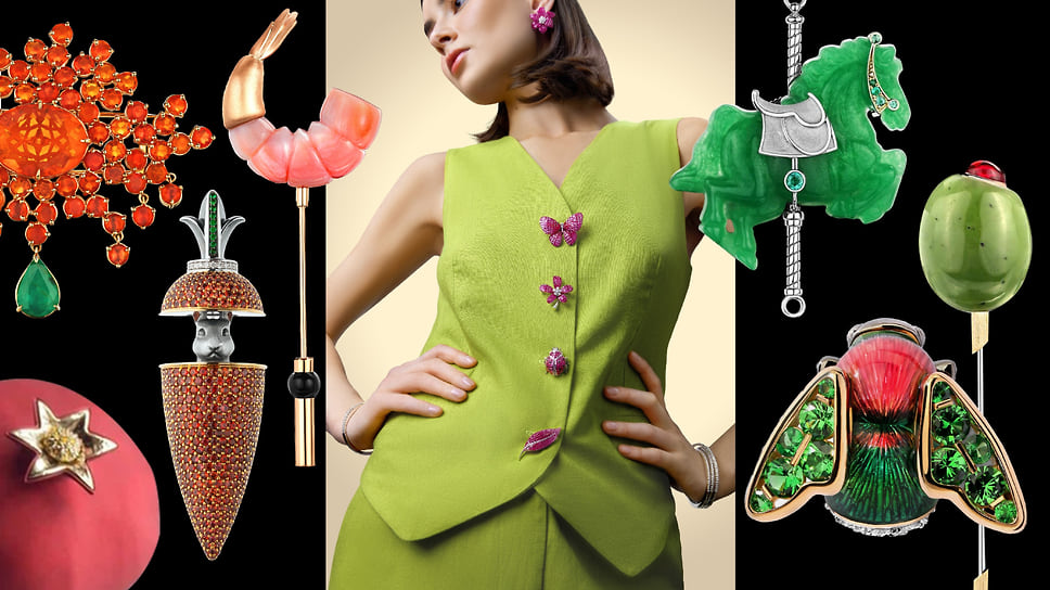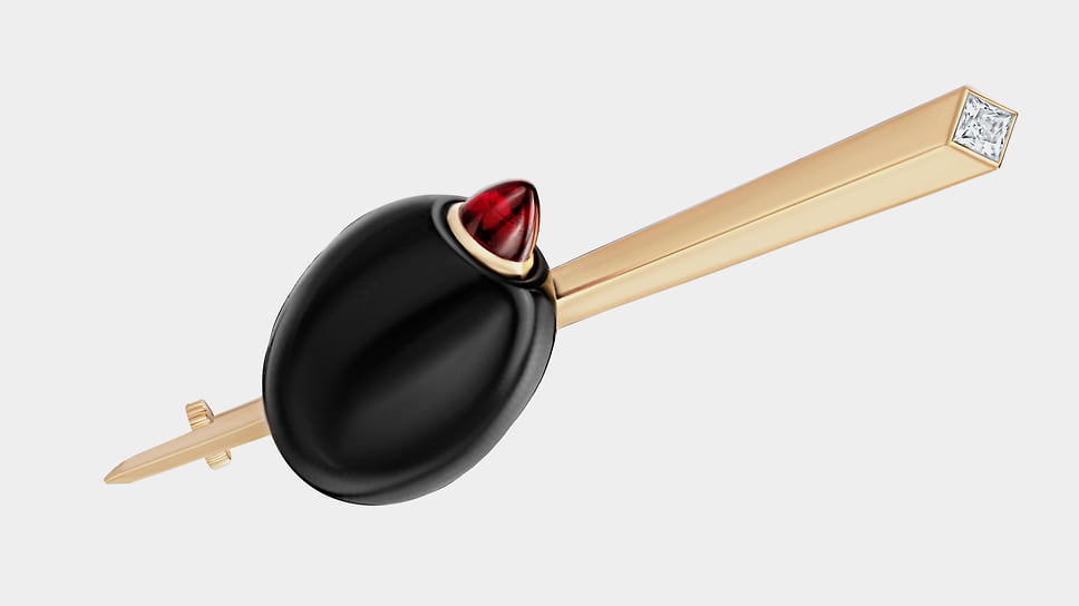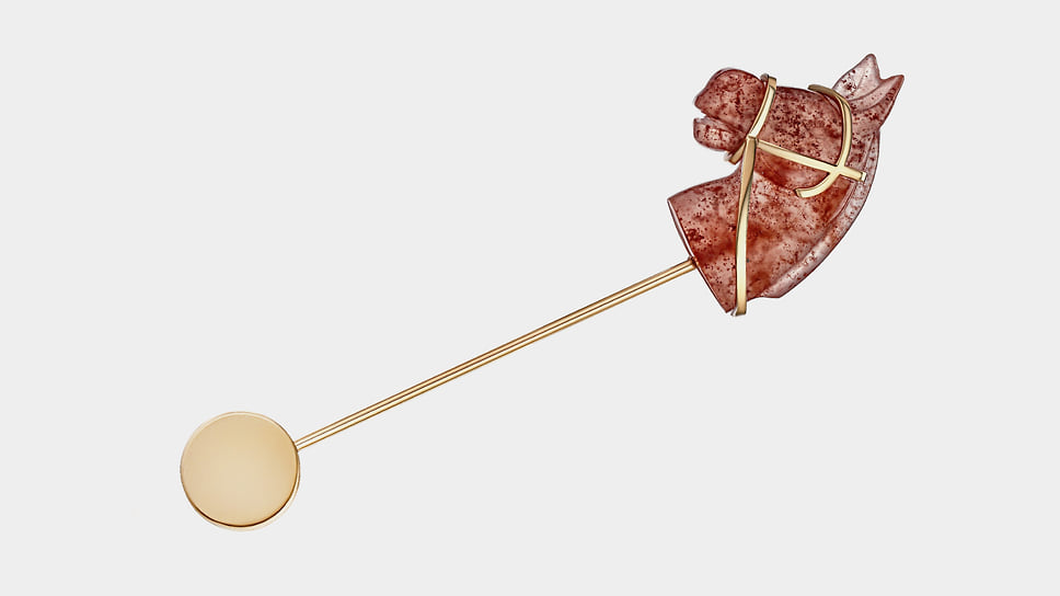 «Для меня лично брошь — довольно сложный ювелирный аксессуар, потому что я люблю чувствовать украшения телом. А брошь — это единственный предмет, который крепится к ткани, и с ним нет такой связи. Я говорю не только о физическом ощущении вещи на теле, но и о практической стороне: брошь легче потерять. Она требует осторожности и внимания»,— говорит Анна Минакова, креативный директор Epic Jewellery. Среди работ дизайнеров бренда — брошь-трансформер в виде морковки с прячущимся в ней зайцем и брошь с лепестками цветка из титана, которые можно менять под цвет костюма. Один из свежих примеров — сделанная в преддверии года Лошади брошь «лошадка-скакалка», а скоро появится брошь в виде шахматного коня.