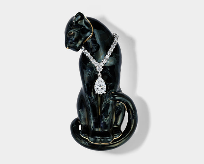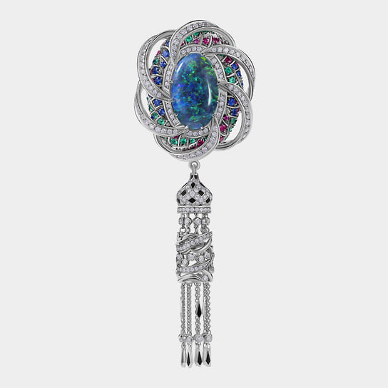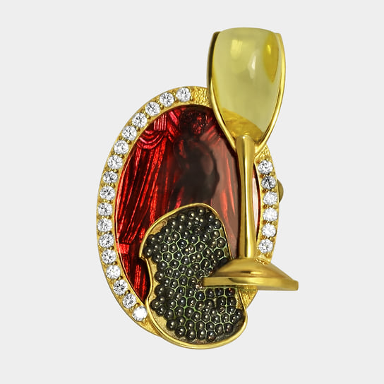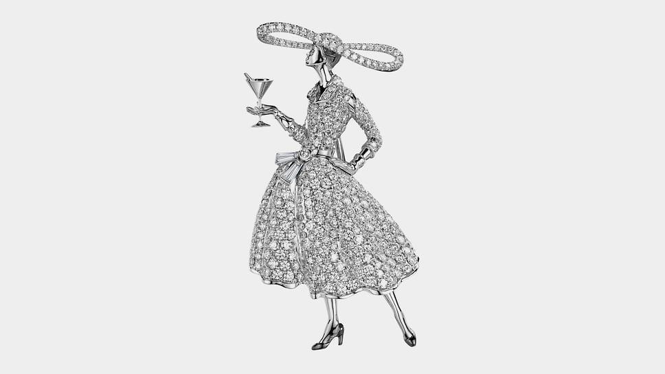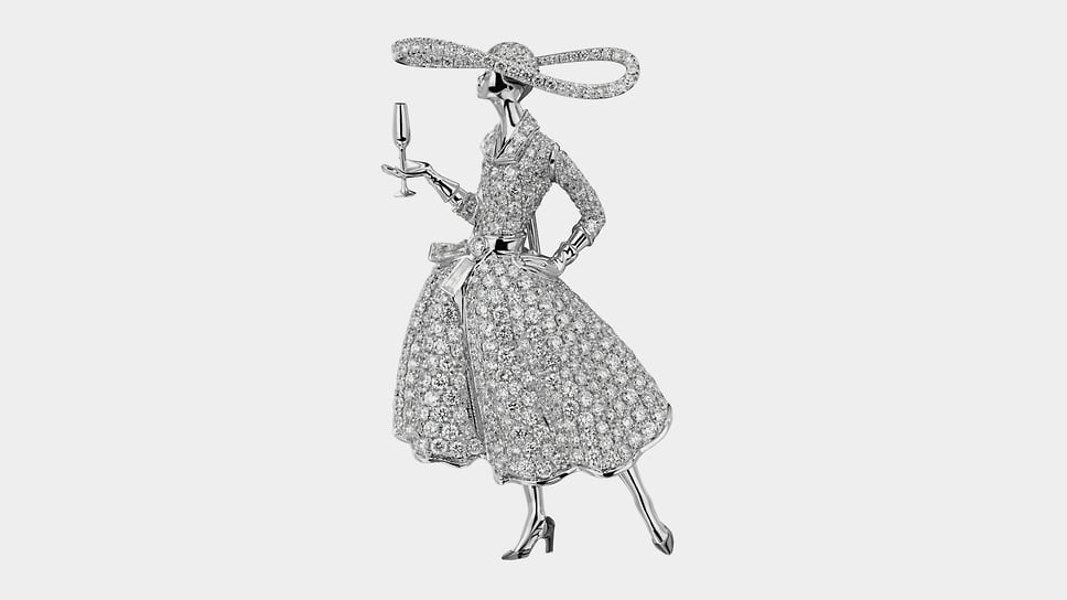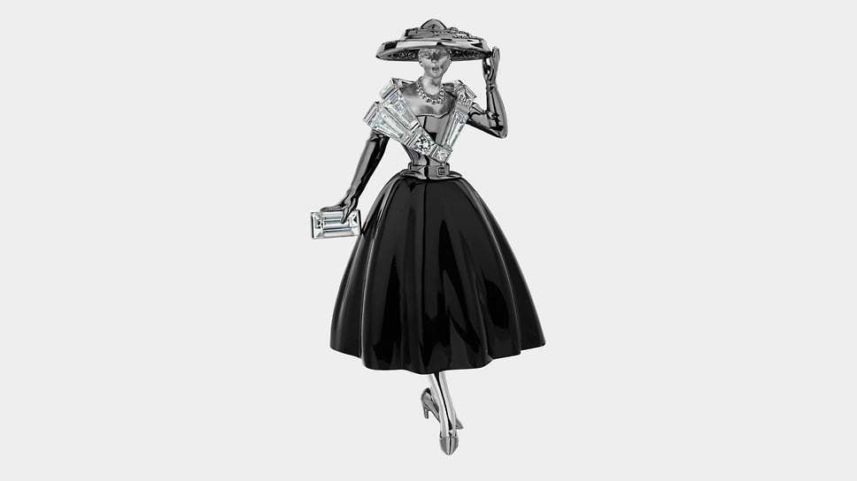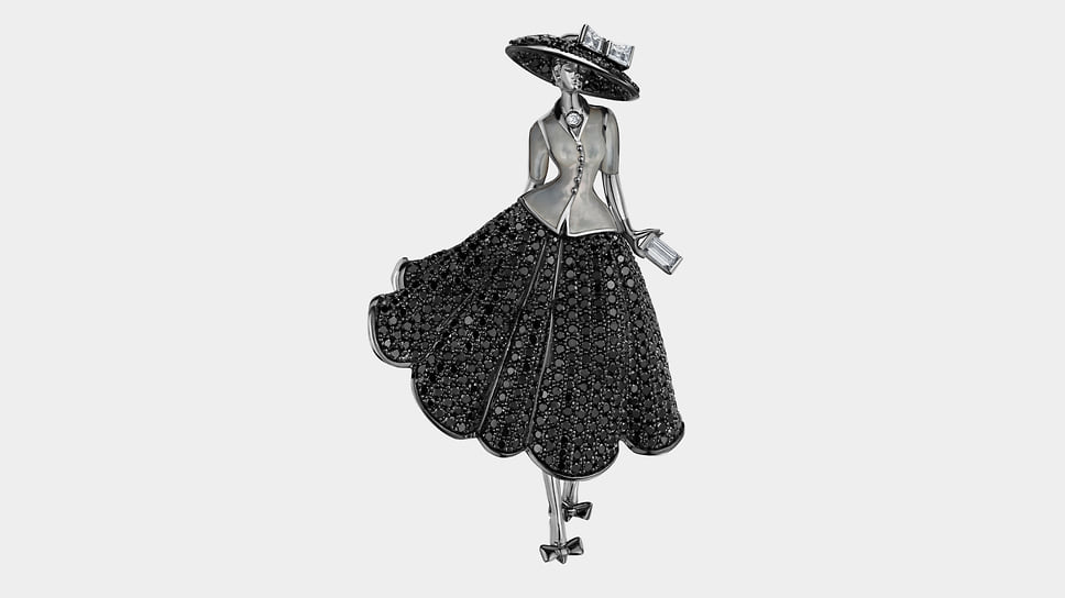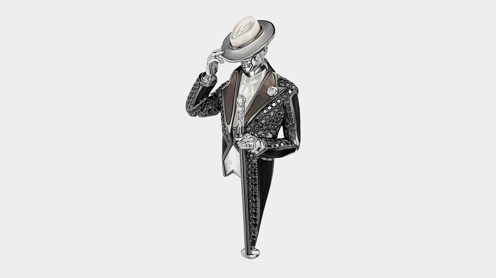 «Броши — апофеоз ювелирного искусства. Они должны быть красивыми и удобными. Для этого требуется мастерство ювелирной работы и фантазия дизайнера»,— уверен Илья Клюев, основатель собственной компании. Среди украшений Cluev есть серия брошей, вдохновленных культовыми силуэтами и образами ХХ века, соединяющих элегантность моды и магию черно-белого кино. В ней собраны мужские и женские фигурки, облаченные в смокинги и приталенные платья с пышными юбками. Черная эмаль и белый перламутр, черные бриллианты и белоснежное паве создают драматичный контраст, как на старой кинопленке. По словам Клюева, «броши легко вписываются в вечерние и дневные образы, добавляя ретрошарм современному стилю: это дань классике, интерпретированная через современную графику и ювелирную точность».