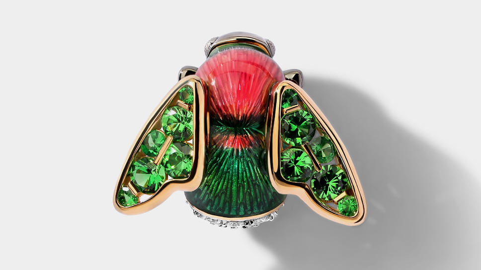 «Брошь, пожалуй, наиболее самодостаточный ювелирный аксессуар, позволяющий больше свободы самовыражения, нежели серьги, подвес или кольцо. Она выигрышно смотрится не только в составе сета, но и как самостоятельный аксессуар, будучи заметным акцентом»,— комментирует Юлия Комарова, исполнительный директор ювелирного дома Chamovskikh. Этот предмет ювелирного гардероба весьма вариантивен: от монохрома и градиента до яркого колористического решения; от строгой булавки до фантазийных и даже ироничных вещиц. Брошь является важным стилеобразующим элементом, но, безусловно, требует творческого подхода. Носить ее можно по-разному: миксовать с платком, поместить на сумку, приколоть к манжете рукава https://disk. yandex. ru/d/v3QbnIN-yLkBtQ.