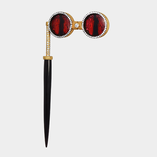 «Брошь — это, по сути, универсальный акцент, который не привязан к конкретной части тела, как кольца, серьги или браслеты. И она добавляет выразительности всему образу. Мой бренд делает броши с самой первой коллекции, которая была посвящена году змеи. Сложно представить, но это было больше десяти лет назад»,— говорит Диана Джанелли, основатель собственной марки украшений. Чтобы брошь получилась удачной, важны пропорции (украшение должно быть соразмерным человеку), важны материалы и камни (Диана, как геммолог, отдает предпочтение натуральным камням). Дизайн должен рассказывать историю и быть узнаваемым: в последней коллекции «Маленькое вечное» броши вдохновлены детством и отсылают человека в воспоминания о первой карусельной лошадке. Самым сложным в дизайне и конструкции брошей Диана считает достижение идеального баланса между красотой и практичностью. Тяжелая брошь может провисать на ткани, поэтому в Dzhanelli вручную гравируют детали и тестируют каждую брошь, что иногда требует десятков итераций. Как и с чем носить броши Dzhanelli? «Классический вариант — на лацкане жакета или пальто, а-ля Шанель. Наши ироничные броши в виде яиц с икрой из коллекции "Гедонизм" прекрасно смотрятся на плотной ткани. Для вечера я бы рекомендовала закрепить брошь на поясе платья или сумке — идеально подойдет наша акцентная "Дверная завеса" из коллекции "Фамильный хрусталь". Главное, не бояться выражать себя!»