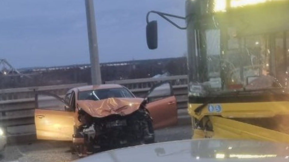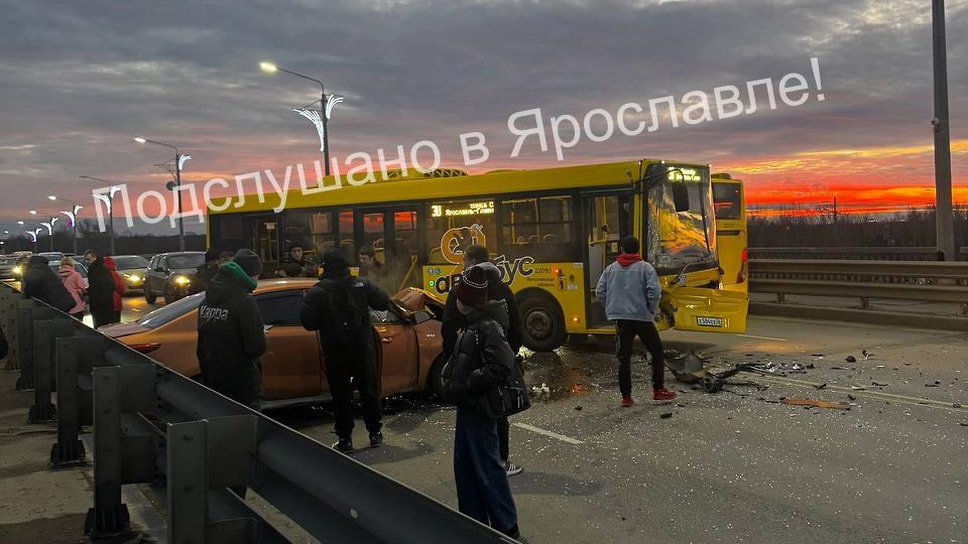 В Ярославле на Октябрьском мосту столкнулись автобус и легковой автомобиль Kia. По данным областного УМВД, пострадал человек.