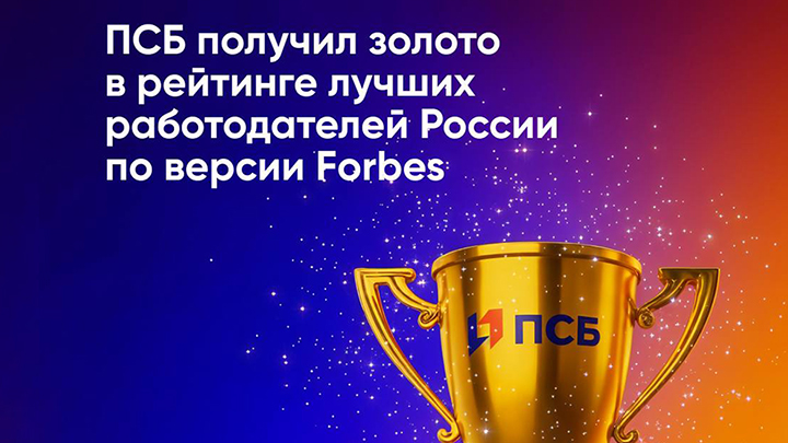 ПСБ получил «золотой» статус в рейтинге лучших работодателей России 2025 по версии Forbes.