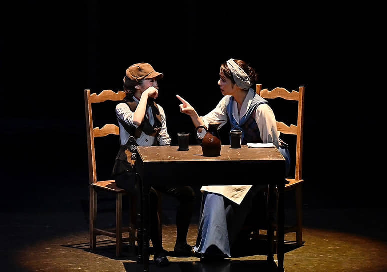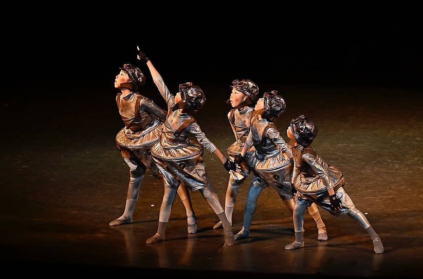 В этой поучительной истории про город, в котором из-за дыма не видно звезд, про мальчика-трубочиста Любиччи, верившего, что они все-таки есть, про его мусорного друга Пупелля, с помощью которого Любиччи сумел-таки подняться над смрадом к чистому небу, нет злодеев — ни фантастических, ни реальных. Главных героев травят сами жители городка во главе с троицей особо принципиальных девиц: мальчика хейтят морально — за его звездные фантазии, мусорного монстра хотят извести физически. Необходимую в детском балете функцию страшилок исполняет черный лохматый кордебалет «дымов»; сияющих звезд танцует женский кордебалет в пачках — кружась и перестраиваясь, как снежинки в «Щелкунчике». Намеков на старинные балеты тут предостаточно: воздушные бури, сотрясающие каравеллу, на которой герои поднимаются к звездам,— привет из «Корсара», путешествие к мечте — явная цитата из «Спящей красавицы». Только горизонтальная панорама зарослей, проплывающих мимо ладьи принца Дезире и феи Сирени, в «Пупелле» заменена вертикальной — на заднике город с его дымовыми трубами уходит вниз.