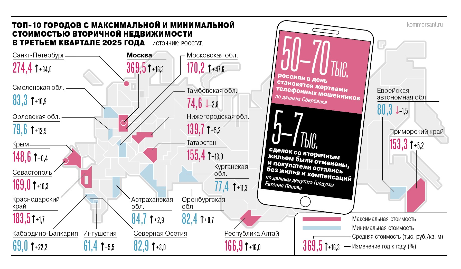 Государство стремится укрепить защиту имущественных прав граждан. С 2013 года Росреестр принимает заявления на запрет проведения сделок без личного участия собственника: в первом полугодии 2025 года в Росреестр поступило более 738 тыс. таких заявлений, что вдвое больше год к году, говорит руководитель правового сопровождения сделок с недвижимостью М2 Василиса Овсянникова. Однако сейчас для покупателей появились новые риски, фактически затмившие собой по статистике остальные, отмечает Светлана Краснова. На первое место вышли сделки с ведомыми продавцами, действующими под влиянием телефонных мошенников.