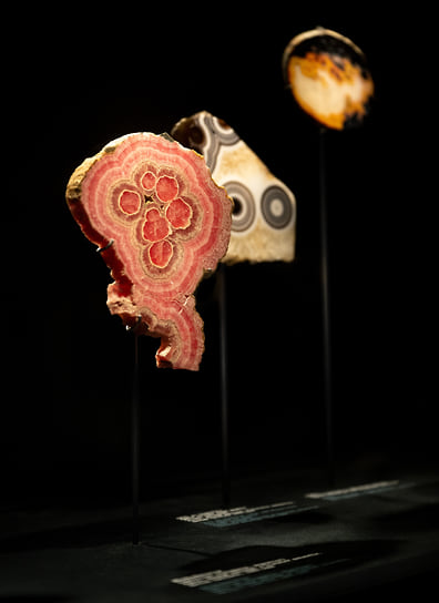 Найдет, и не один, и провозить будет без досмотров — попробуй чиновнику ЮНЕСКО что-нибудь предъявить. Впрочем, камни из коллекции Роже Кайуа не отличаются знатным происхождением. «Они не интересуют ни художника, ни археолога, ни ювелира… Они не полезны, не знамениты. Их грани не сверкают ни на одном кольце, ни на одной диадеме… Я говорю о камнях, более древних, чем жизнь, и которые остаются после нее на остывших планетах, если жизнь имела счастье на них возникнуть. Я говорю о камнях, которым даже не нужно ждать смерти и которым нечего делать, кроме как позволять скользить по своей поверхности песку, лавовым потокам или прибою, буре, времени»,— приводят кураторы слова героя выставки.
