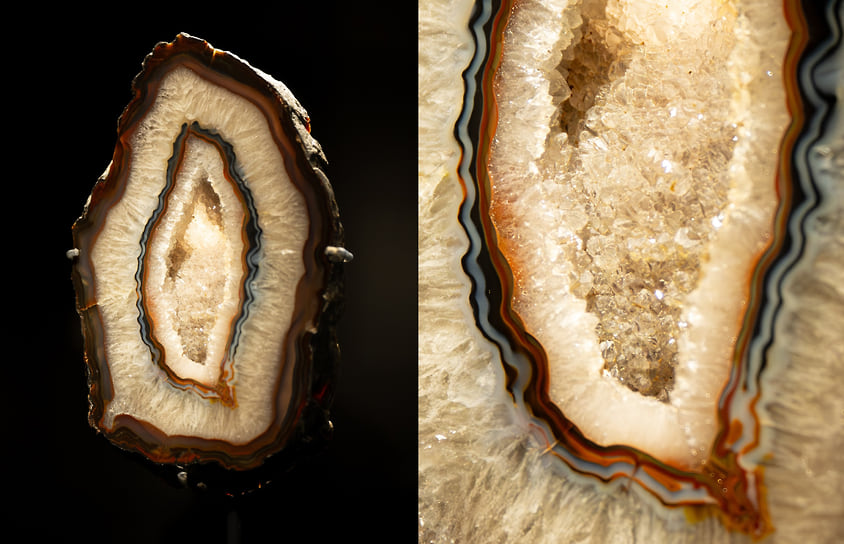 Но поэзия все же возьмет верх, когда Роже Кайуа увлечется миром камней. К слову, страсть к их созерцанию и коллекционированию он тоже унаследовал от Андре Бретона. Официальным началом собрания принято считать 1952 год, писать о камнях он начал в 1965-м, а самая известная его книга «Письмо камней» вышла в 1970-м. Однако первая встреча случилась еще во время войны, когда он жил в Аргентине. В камнях он тогда еще совсем не разбирался, но оказался на одном производстве в Бразилии. Его любопытство привлек прозрачный осколок. Бразилия снабжала Великобританию кварцем для радаров, который должен был быть безупречно чистым. Все сероватые фрагменты рабочие отбивали. Оказавшись в одном из таких промышленных ангаров, Кайуа подобрал несколько непригодных осколков. Внутри он разглядел повторяющийся образ, который с каждым повтором уменьшался, и был совершенно потрясен их красотой. Но обладание длилось недолго. По приезде в Аргентину его багаж досмотрели и камни конфисковали. Доводы о том, что они были подобраны на помойке, не убедили. «Я был огорчен,— вспоминал в своих мемуарах коллекционер.— Я отчаянно привязался к прозрачным и головокружительным перспективам, которые теперь, когда они были у меня отняты, внезапно показались мне бесценными сокровищами, которых я уже никогда больше не найду».