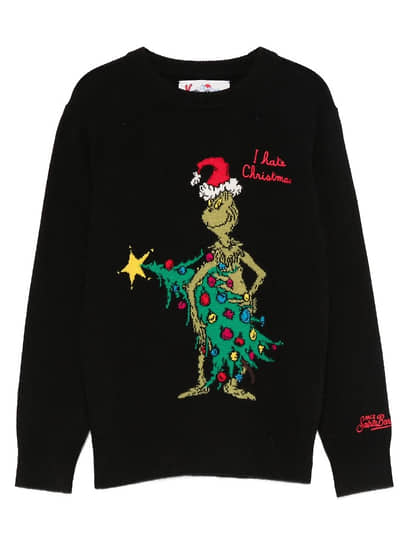 Найти рождественские свитеры можно и в коллекциях Burberry, Loro Piana и многих других классиков. А Acne Studios реструктурируют классический рождественский свитер, меняя форму, пропорции или расположение принта. В этом сезоне Loewe предлагает пейзаж с дорогой и котом: сюжет основан на серии фарфоровых ваз художника Луиса Уильяма Уэйна. А Stella McCartney делает свою интерпретацию шотландского свитера с подковой и лошадьми. У Polo Ralph Lauren — неизменно очаровательный медведь во всех возможных вариациях. У Brunello Cucinelli — коричневый жаккард для любителей спокойных цветов и сюжетов. А тем, кому подавай повеселее, может понравиться MC2 Saint Barth с вывязанным Гринчем и надписью I hate Christmas.
