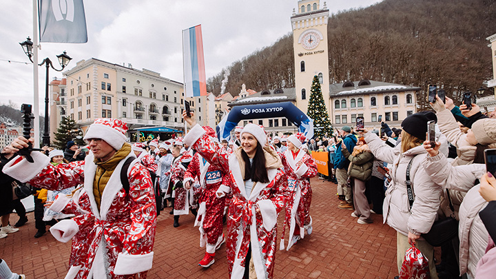 Спортивную историю «Роза Хутор» поддержит традиционный марафон новогодних волшебников: он стартует 30 декабря в 15:00 от главной елки на площади Ратуши. Более 400 любителей спорта получат костюмы Дедов Морозов, Снегурочек и пробегут 2000 метров вдоль реки Мзымта.