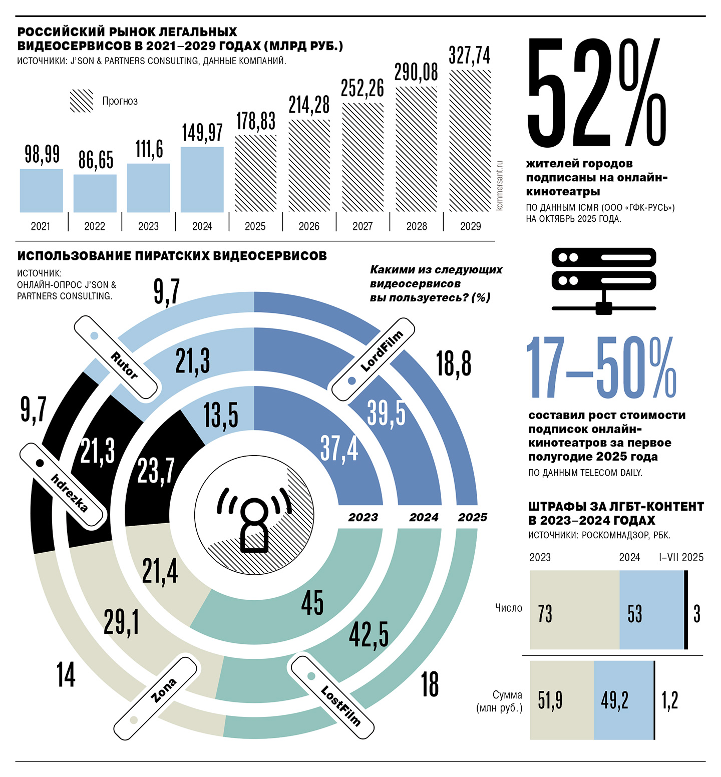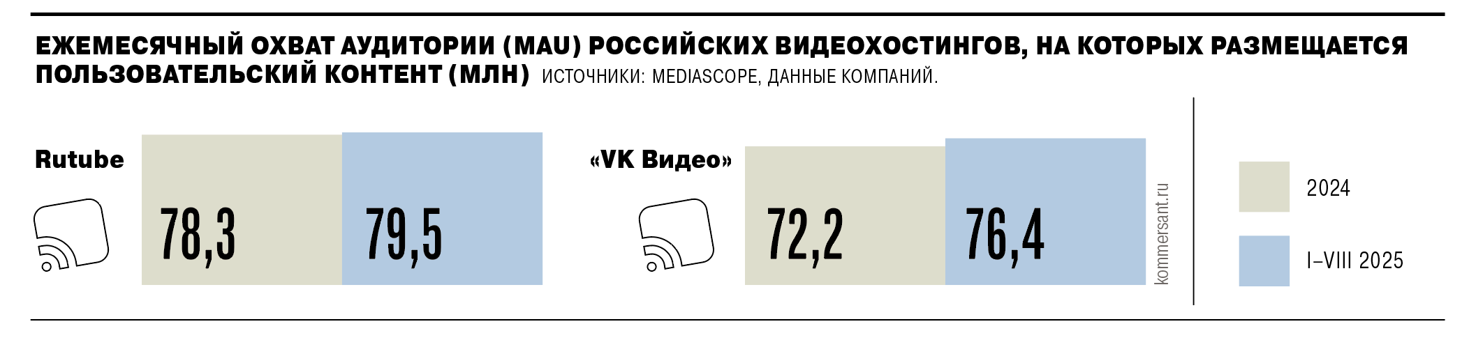 Однако главными «бенефициарами» изменений станут не пиратские ресурсы, а официальные видеосервисы — «VK Видео», RuTube, полагают опрошенные “Ъ” участники медиарынка. «Причина проста — они гораздо более удобны в использовании, пользователь может сразу загрузить от себя неотцензурированную версию, плюс таким ресурсам, в отличие от нелегальных, точно не грозит блокировка»,— говорят они. Представители самих видеохостингов неоднократно отмечали, что удаляют пользовательский контент по требованию правообладателей.