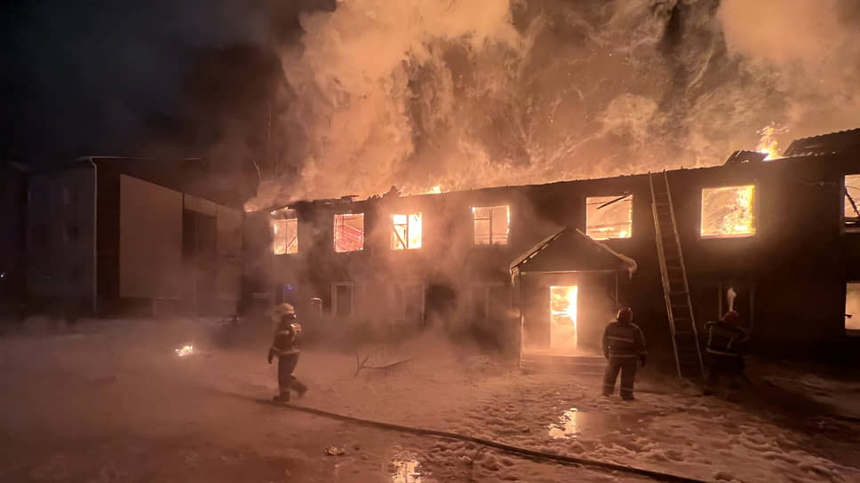 В югорском поселке Солнечный сгорел двухэтажный многоквартирный дом