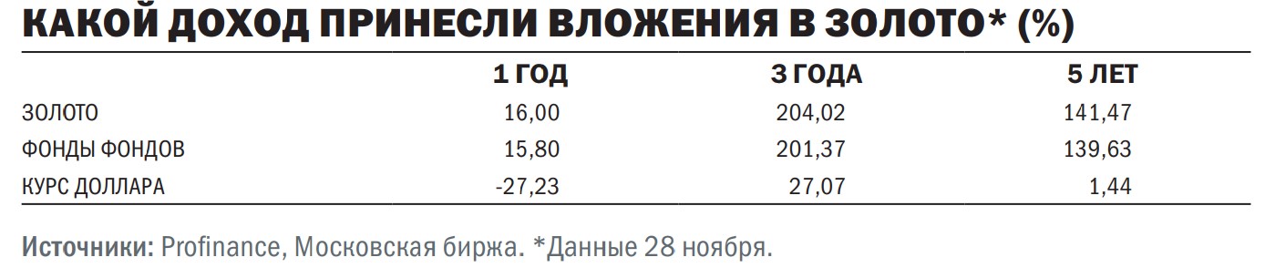 Неплохую прибыль инвесторам принесли фонды денежного рынка, акций и золота. По данным Investfunds, цена паев таких ПИФов выросла на 20–21%, 1,5–29% и 12–15% соответственно. С учетом того, что в золотые фонды, торговавшиеся на Мосбирже, приходилось 97–99% активов, расхождение результатов могло быть связано с вознаграждением, удерживаемым УК. Данные траты съедают в зависимости от ПИФа 0,35–2% от среднего размера его активов. В случае фондов акций худший результат показали продукты, ориентированные на сырьевые компании, которые пострадали из-за сильного рубля и низких цен на сырье.