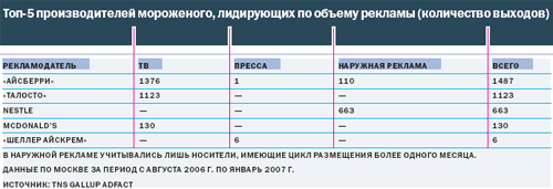 мороженщиков, приходится на долю 10 крупнейших