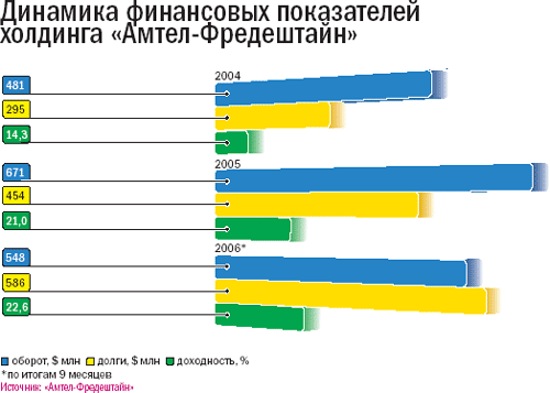 В «Амтеле» тоже пока не сообщают о четкой стратегии – только говорят о сокращении долгов. «Мы постоянно сокращаем расходы на обслуживание долга,– говорит Джон Роуз.– В 2005-м они составляли свыше 13% годовых, а в этом – 9%». По его словам, уже в следующем году компания станет прибыльной, а инвестиции начнут работать – продажи будут расти, а долг – снижаться, хотя и лишь относительно оборота. «С учетом розницы в 2008 году мы получим оборот $1 млрд, а долги увеличатся незначительно,– обещает Роуз.– Недостатка в предложениях от кредиторов нет».
