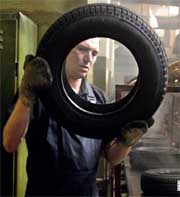 Когда-то все производство здесь выглядело именно так. В середине 2003 года 83% акций завода приобрел шинный холдинг «Амтел». Теперь Юрий Рыбкин показывает старые цеха лишь для того, чтобы подчеркнуть контраст с переоборудованными «Амтелом» площадками – их теперь на заводе две трети. В цехах установлены полуавтоматические станки Krupp. Полуавтоматическими они называются потому, что рабочему все же приходится нажать несколько кнопок и снять готовую покрышку.