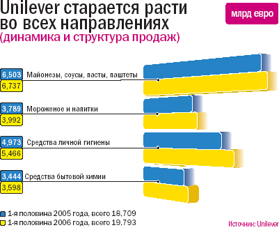 В 2006 году концерн Unilever показал на российском рынке сокращение темпов роста примерно на 3%. Но президента Unilever в России, на Украине и в Белоруссии Хермана Верстратена это не смущает. Он собирается увеличить продажи за счет расширения производства и новых марок.