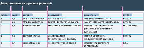 Мне показалась очень своевременной идея победителя – Татьяны Максимовой. Это образец подхода, ориентированного на кандидата. Смысл такой тактики заключается в том, что если таких кандидатов мало, то их надо мотивировать. И даже ухаживать за ними. Кстати, это хорошо описано в книге Майклза и Хэндфилд-Джонса «Война за таланты». Технологии известны: создание имиджа компании, профессии и самой вакантной позиции, а также формулировка уникального предложения для сотрудника.