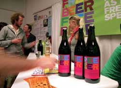 Артистическая группа Superflex из Копенгагена – несколько студентов Университета высоких технологий – изобрела новый продукт. А вместе с ним создала пугающий прецедент для производителей с патентно-защищенной продукцией. Изобретение Superflex – домашнее пиво Free Beer с добавлением гуараны, растения, содержащего кофеин. Участники проекта сделали рецепт напитка всеобщим достоянием, выложив его в интернете. Каждый желающий может использовать его бесплатно, но при этом он должен украсить свои бутылки этикетками Free Beer. Дизайн этикеток выложен в Cети вместе с рецептом.