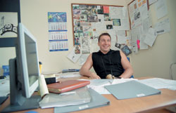 Глядя на рабочее место Евгения Чичваркина, ни за что не скажешь, что здесь сидит управляющий крупнейшей на рынке дилерской компании. Вполне рядовой «недиректорский» стол, на котором не наблюдается ни компьютера, ни деловых бумаг, зато есть масса других, очевидно, тоже полезных для повышения эффективности работы предметов. Например, такая игрушка: прозрачный мячик, внутри которого плавают отрезанные пластиковые пальцы конкурентов. В чичваркинском стиле выполнен и угол (у топ-менеджеров «Евросети» нет отдельных кабинетов) начальника отдела сбыта, увешанный избранными посланиями от благодарных и разгневанных покупателей.