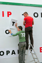 Девушки же пустились на то, что менеджер команды «Абсент» Евгений Юдкин назвал «художественным хенд-мейдом, аппликацией и макраме». Всю ночь они пришивали нарядные баклажаны и болгарские перцы к материалу, напоминавшему газонную траву. Слоган: «Будет точно больше силы. Новиков – витамины». Такая самоотверженность поразила даже приглашенную звезду, пивовара Олега Тинькова, которого особенно тронуло то, что «всю ночь не спали, нитками пришивали».