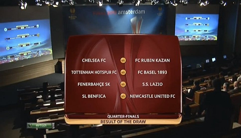 Для единственного российского клуба, который пробился в восьмерку сильнейших в Лиге Европы, жеребьевка получилась просто ужасной. В четвертьфинале прошедшему испанские «Атлетико» и «Леванте» казанскому «Рубину» придется играть с фаворитом турнира, победителем Лиги чемпионов прошлого сезона — лондонским «Челси».