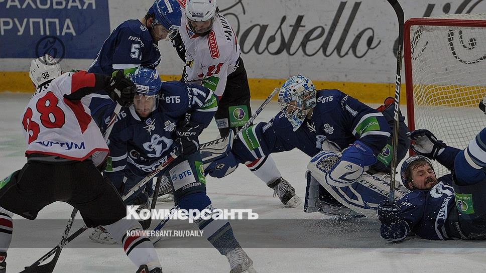 Выдержав натиск "Трактора" в концовке, хоккеисты московского "Динамо" (в синей форме) одержали первую победу в финале Кубка Гагарина