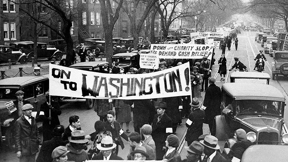 "Голодные марши", 1931--1932 годы. Протестующие безработные в Вашингтоне, 7 декабря 1931 года