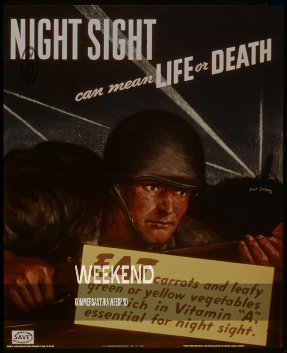 "Морковь сохраняет здоровье и помогает видеть в темноте" — плакатами с подобными лозунгами была завешена Англия во Вторую мировую войну. Куратор World Carrot Museum Джон Столарчик считает, что тогда и родился миф о моркови, полезной для зрения. Столарчик провел масштабное исследование и выяснил, зачем была нужна эта пропаганда. Инженеры разработали бортовые радары, позволяющие обнаруживать немецкие бомбардировщики по ночам, но надо было как-то объяснить населению и врагу боевые успехи, не выдав при этом военную тайну. Когда британский ас Джон Каннингем по прозвищу Кошачий Глаз сбил несколько вражеских самолетов в ночное время, кто-то из министерства обороны сказал газетчикам, что летчики едят много моркови и благодаря ей видят в темноте. Эта дезинформация пришлась кстати министерству продовольствия. В Британии была острая нехватка продуктов питания — из-за морской блокады страна потеряла большую часть поставщиков. Вслед за популяризацией морковки по всей Англии развернулась кампания, агитирующая население заняться огородничеством. А министр продовольствия лорд Вултон даже вел специальную передачу на радио, в которой учил домохозяек готовить из скудного пайка и выращенных на импровизированных огородах овощей — в основе большинства рецептов была как раз морковь, ей даже заменяли дефицитный сахар.
