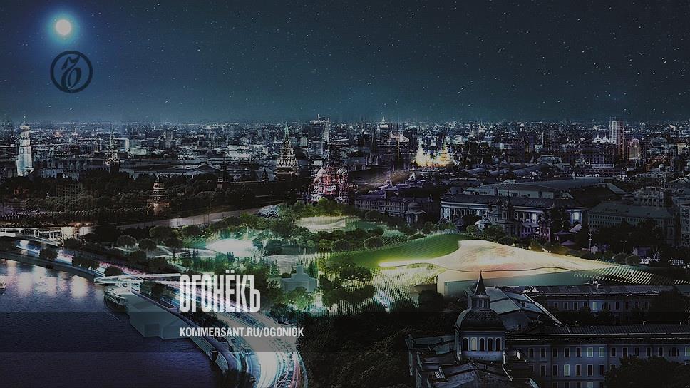 На прошлой неделе были оглашены итоги международного конкурса по разработке концепции парка "Зарядье". Победителем признано американское бюро Diller Scofidio + Renfro. На месте снесенной гостиницы "Россия" появятся искусственные холмы и гигантская лужайка, а также зоны "тундра", "степь", "леса" и "болота"