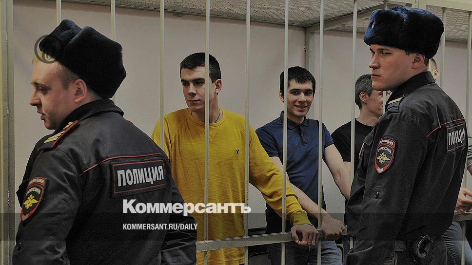 Подозреваемые в массовых беспорядках 6 мая на Болотной площади в Москве Денис Луцкевич, Андрей Барабанов и Артем Савелов во время заседания Замоскорецкого районного суда