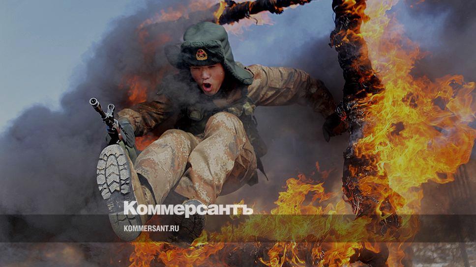 Китайский солдат во время тренировки в Хэйхэ, провинция Хэйлунцзян