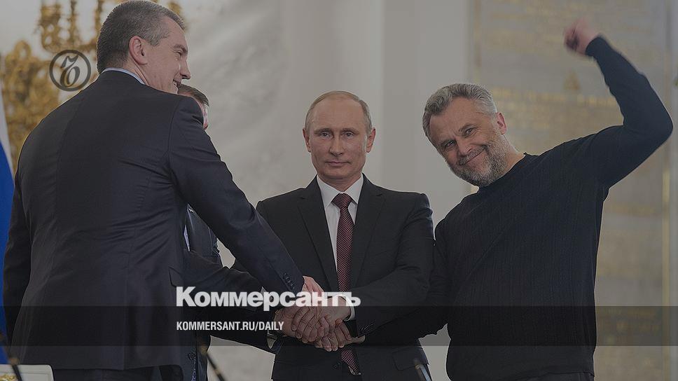 Глава Крыма Сергей Аксенов (слева), президент России Владимир Путин (в центре) и глава Севастополя Алексей Чалый (справа) отныне всегда вместе — и в беде, и в радости