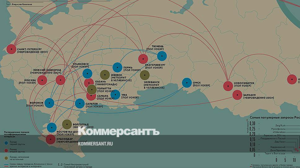 Журнал "Коммерсантъ Секрет Фирмы" 01.04.2014, 00:00 Высокие запросы О чем думает Россия? Аналитики российского Google по просьбе «Секрета фирмы» проанализировали самые популярные запросы Google по просьбе "Секрета фирмы" составил карту самых популярных запросов жителей крупнейших российских городов Выйти из полноэкранного режима Развернуть на весь экран