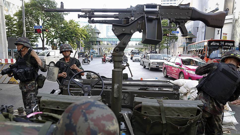 На минувшей неделе вооруженные силы Таиланда фактически совершили очередной военный переворот — девятнадцатый в истории страны. Рано утром 20 мая военные взяли под контроль столичные улицы и объявили о введении в стране военного положения со всеми вытекающими из этого последствиями, такими как введение комендантского часа и цензуры. Было сформировано Командование по поддержанию мира и порядка (КПМП), однако официально правительство не низложено, а конституция (на момент сдачи номера в печать) не отменена. И эти два обстоятельства позволяют военным утверждать, что никакого переворота не произошло. "Наши действия вовсе не переворот, граждане не должны беспокоиться. Просто создан центр по контролю за порядком, который возглавил военный",— заявил главнокомандующий Королевской армией Таиланда Прают Чан-оча, который, собственно, и стал главой КПМП.