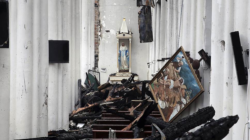 Последствия пожара в кафедральном соборе XIX века в Нинбо, провинция Китая Чжэцзян