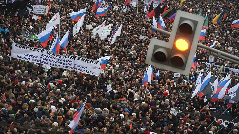 1 марта в Москве прошло траурное шествие в память о Борисе Немцове. Марш памяти стал заменой запланированного оппозицией ранее, но отмененного из-за убийства политика антикризисного марша «Весна»