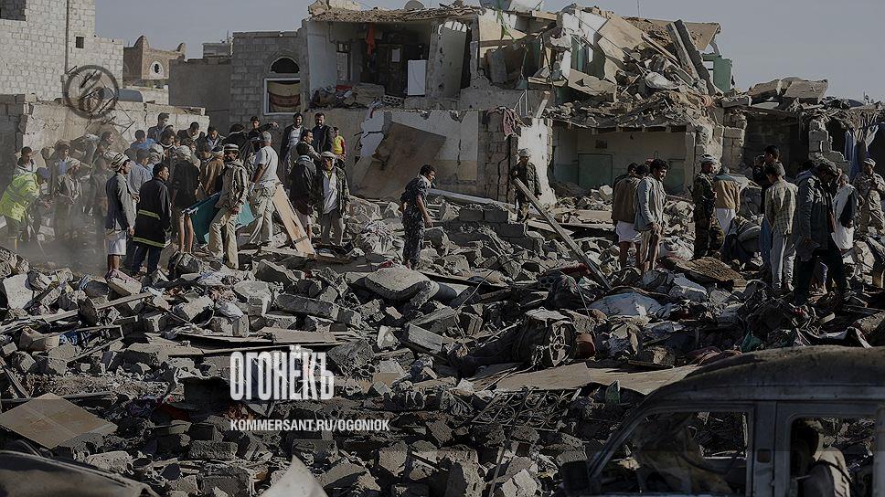 Военная операция ВВС Саудовской Аравии в Йемене началась 26 марта с мощных (об этом можно судить хотя бы по разрушениям, видным на этом фото) бомбардировок столицы Саны. Досталось не только аэропорту и военным объектам: под развалинами этих домов (см. то же фото) в Сане весь минувший четверг искали людей. Целью ударов, которые, по словам саудовских властей, поддержали "около десяти стран" (вскоре стало понятно, что речь не только о союзниках из числа богатых нефтяных монархий Аравийского полуострова, но и, к примеру, о США), было остановить продвижение шиитских мятежников-хуситов — те уже взяли аэропорт. По сути, вопросом времени было и взятие крупнейшего порта страны Адена, из-под которого к тому времени эвакуировался даже американский и британский спецназ (они там довольно долго и безуспешно ловили "Аль-Каиду", еще одну силу, играющую важную роль в этой стране).