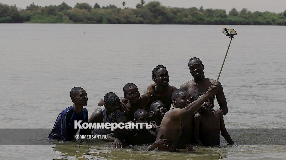 Хартум, Судан. Молодые люди делают селфи на реке Нил