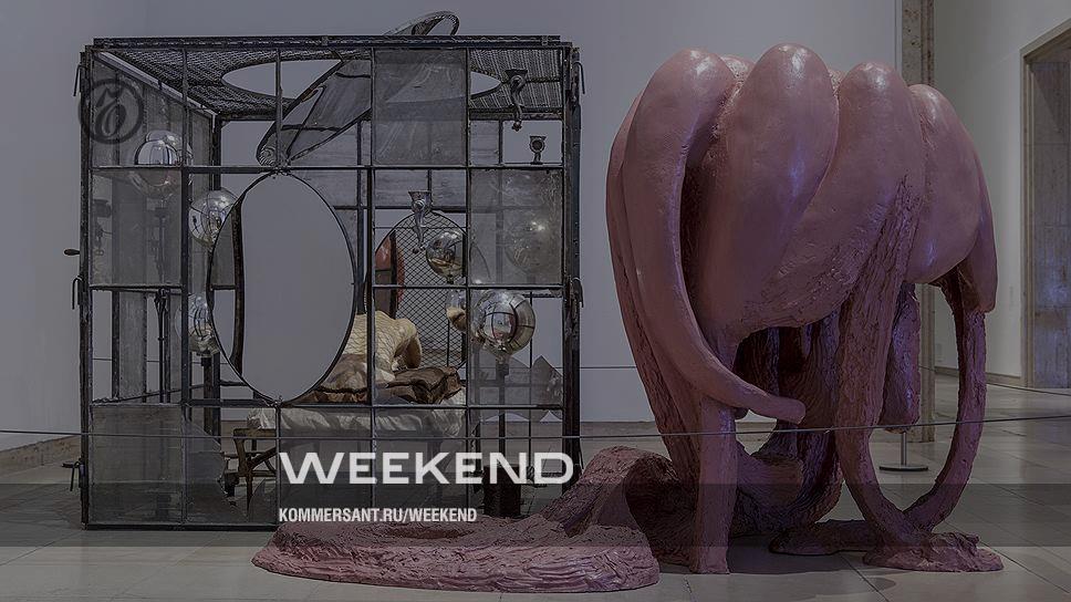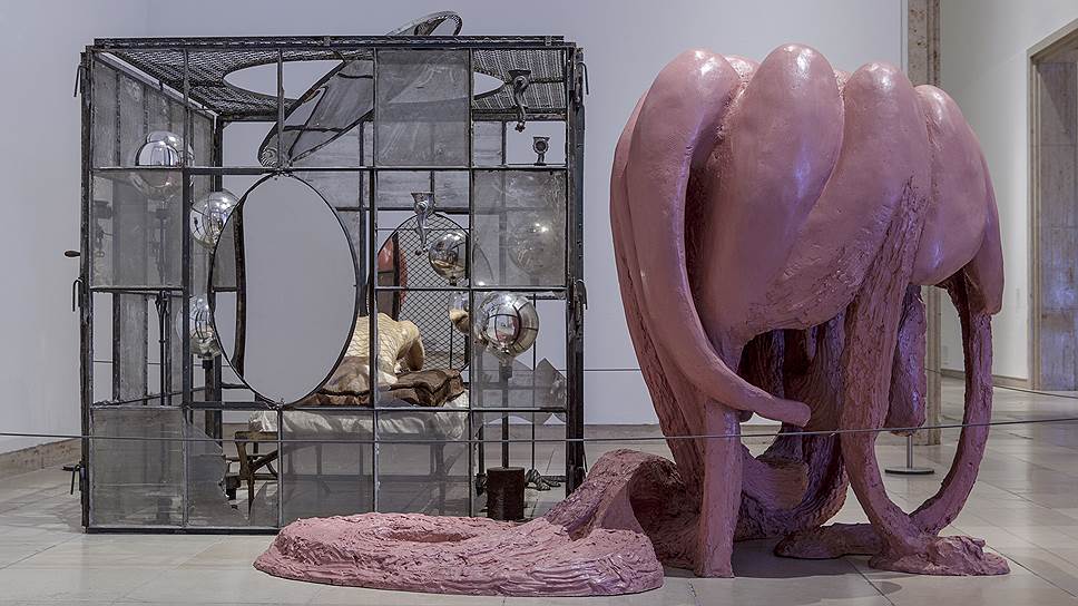 Луиз Буржуа в латексной скульптуре «Avenza», позже ставшей частью инсталляции «Противостояние», 1975 год
