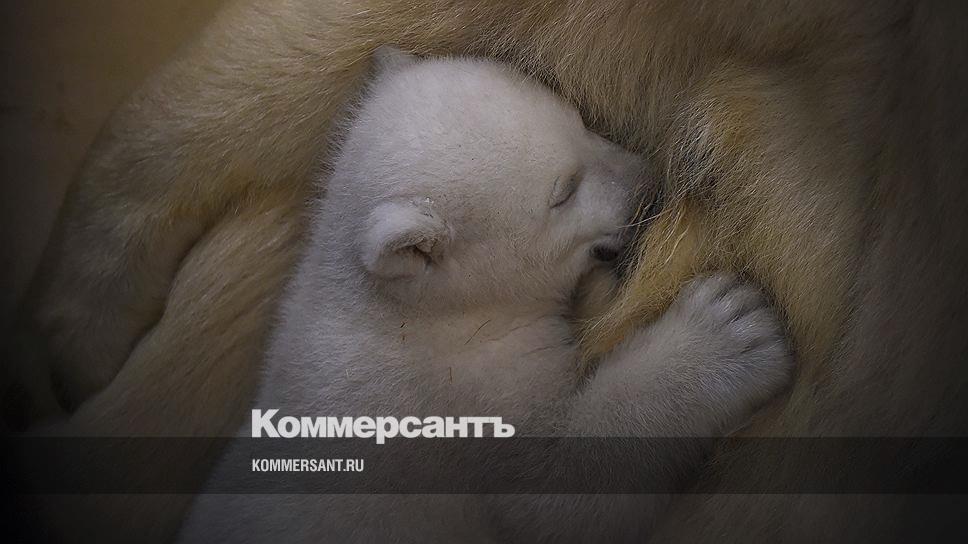 Бремерхафен, Германия. Белая медведица с медвежонком в зоопарке
