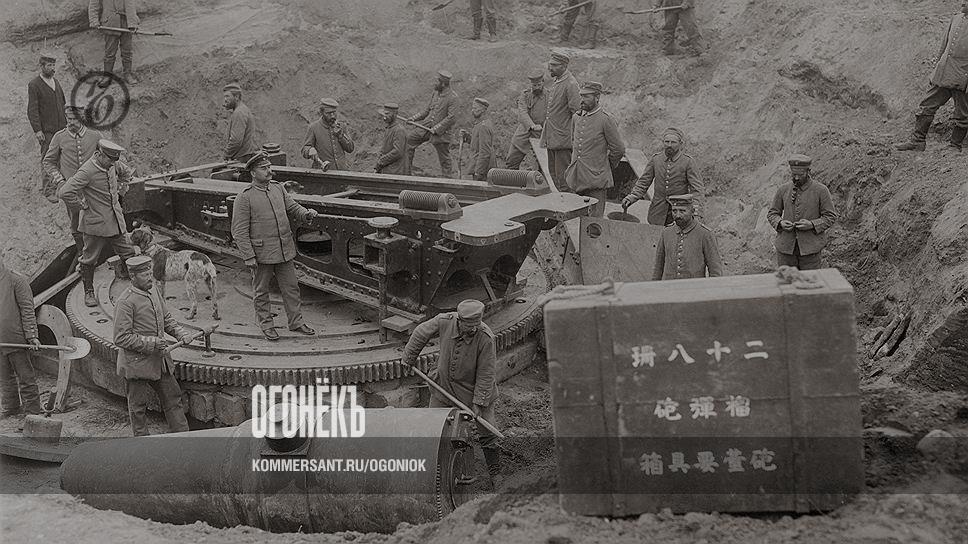 Это уникальное фото сделано в январе 1915 года: германские офицеры на Восточном фронте осматривают японскую пушку и боеприпасы, захваченные на русских позициях