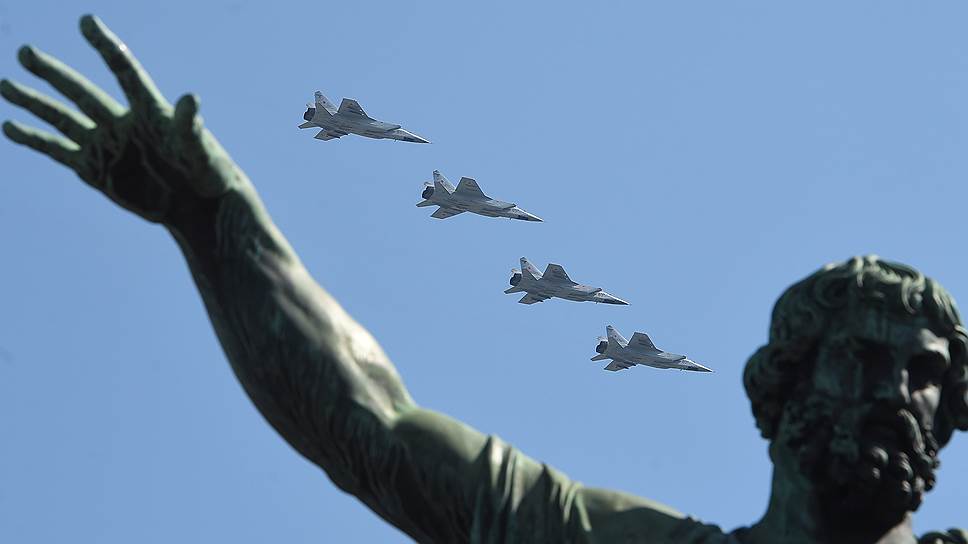Штурмовики Су-25 во время воздушной части военного парада