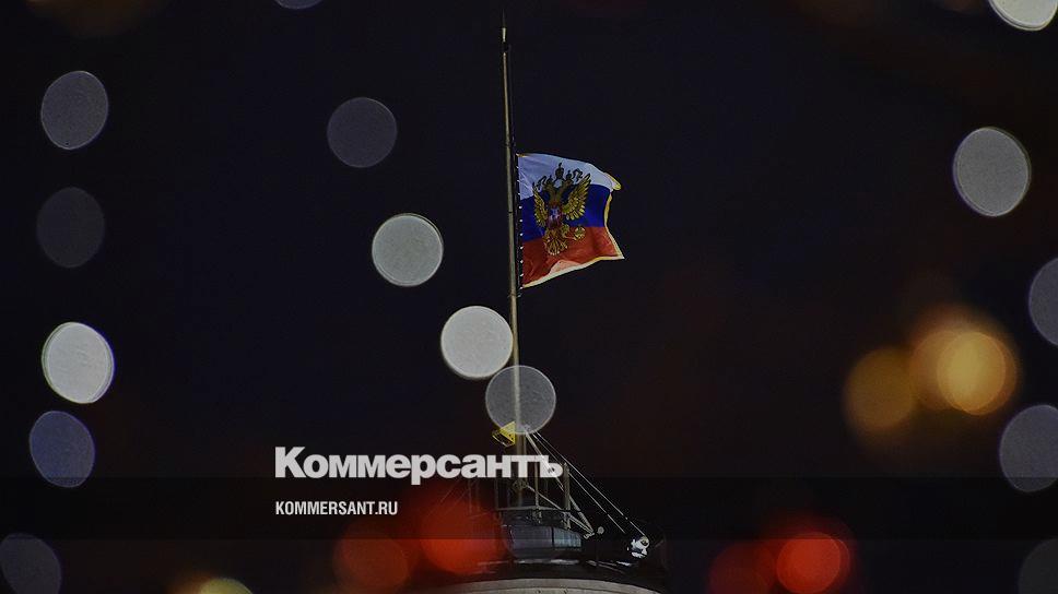 Москва. Приспущенный государственный флаг России в день траура