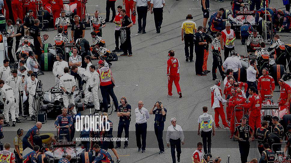 Даже среди целой армии людей, обеспечивающих работу "Формулы-1", Берни просто не способен затеряться (на фото: рабочий момент во время Гран-при Германии)