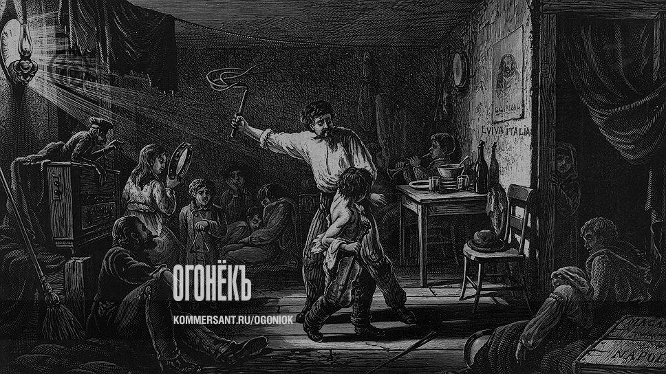 Дети всегда были самой беззащитной мишенью. На этой гравюре конца XIX века мастер избивает ученика