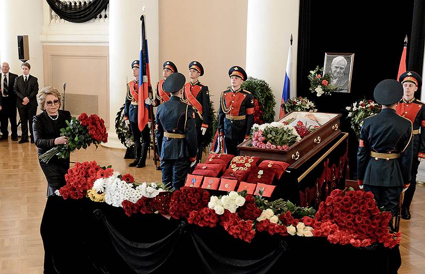 В Таврическом дворце в Санкт-Петербурге проходит церемония прощания с писателем Даниилом Граниным, передает ТАСС. Гражданская панихида началась с минуты молчания, которую объявил ведущий церемонии — народный артист России Николай Буров. У дверей Таврического дворца собираются люди, которые пришли проститься с писателем. Напомним, господин Гранин умер 4 июля на 99-м году жизни. Классик отечественной литературы и лауреат многих советских и российских государственных наград, почетный гражданин Санкт-Петербурга будет похоронен сегодня на Комаровском кладбище. Подробнее о писателе читайте в материале «Ъ» «Человек из пантеона».